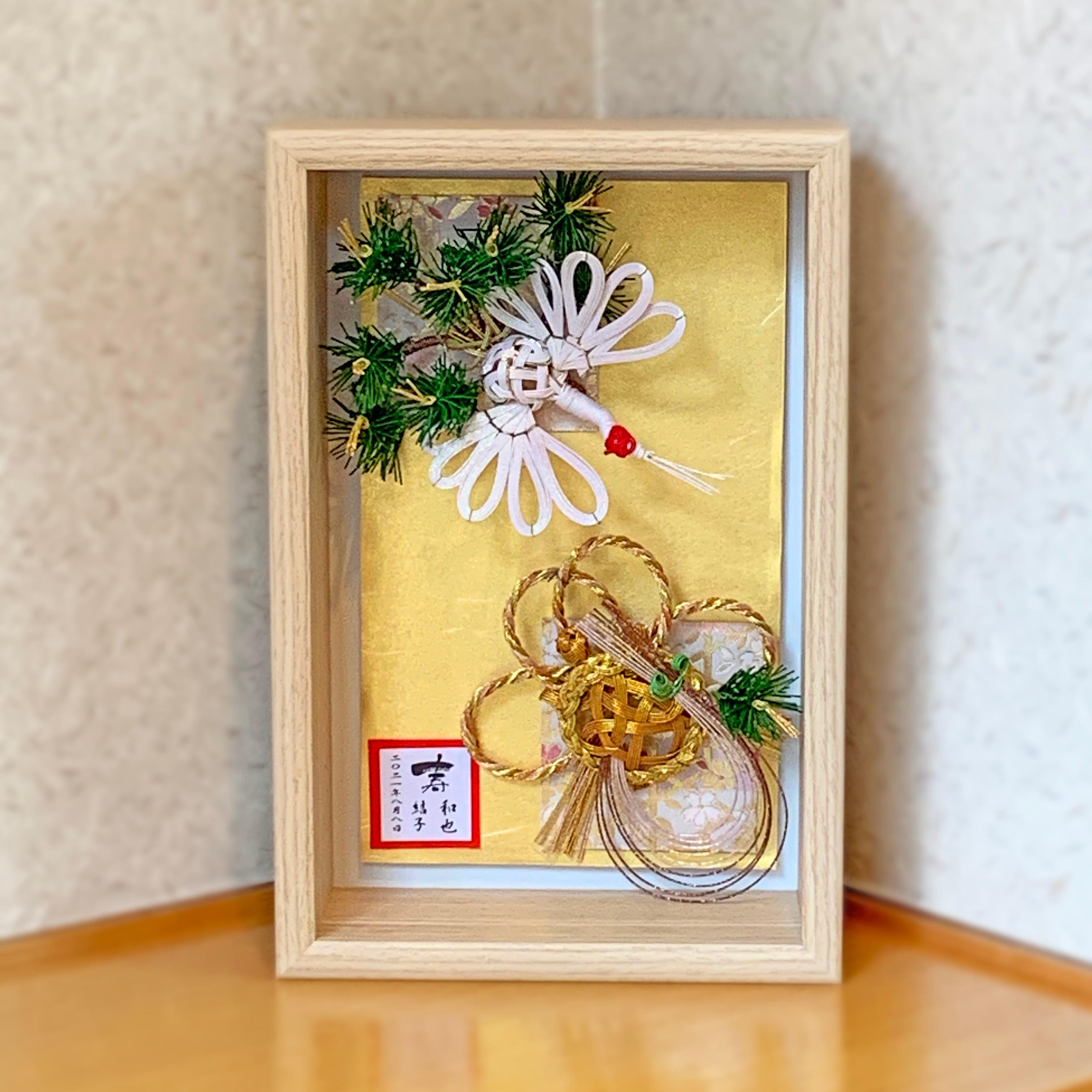 結納品リメイク アートボックス|白木風フレーム・記念品 インテリア・オーダー制作・ウエルカムボード 両親贈呈品にも