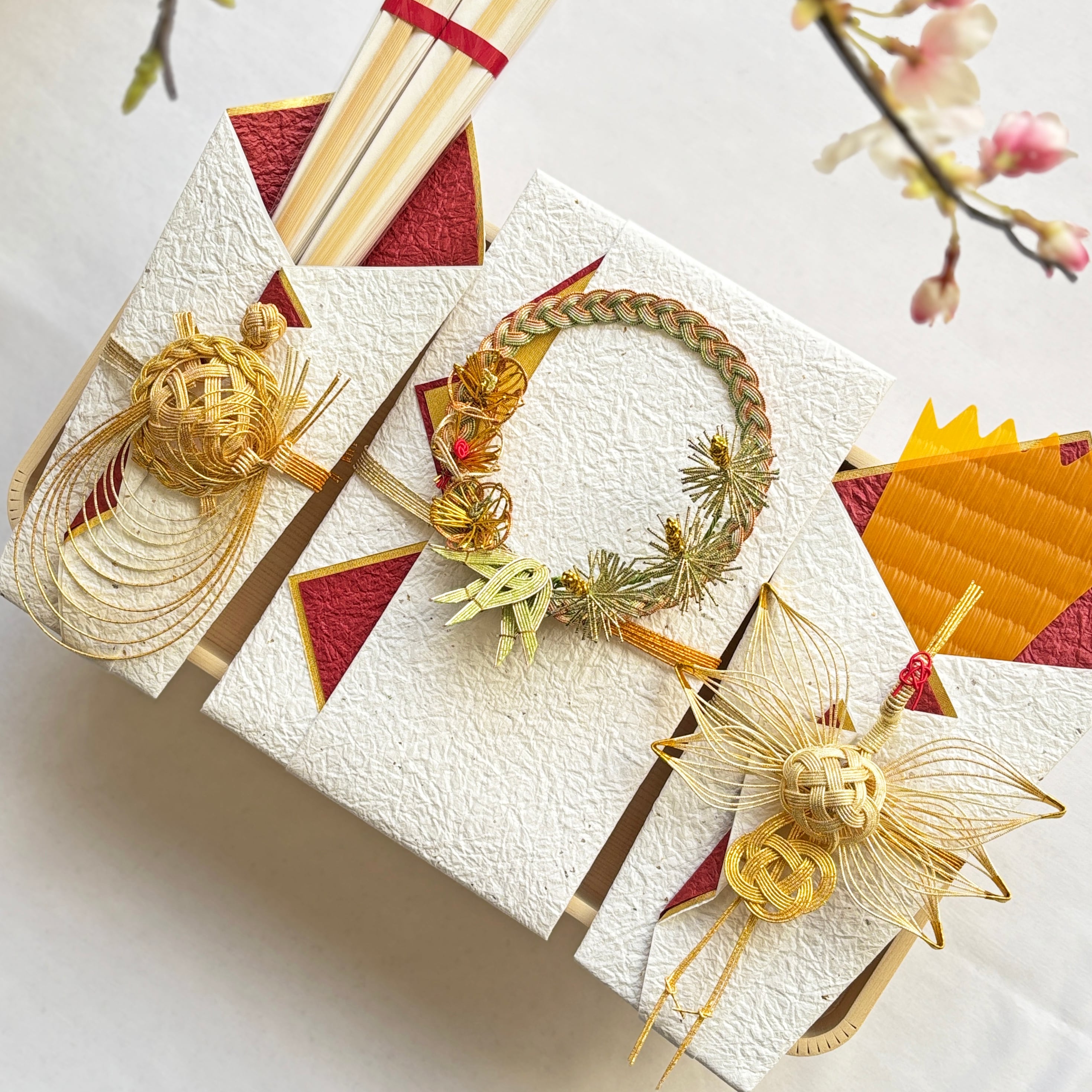 両家顔合わせ 略式 結納桜づくし引き出し木箱 金封 【白木台 風呂敷付】