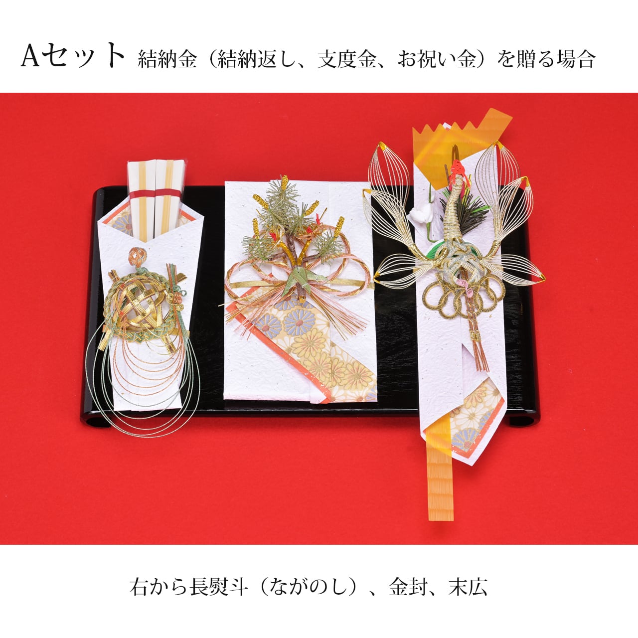 結納金(結納返し、支度金、お祝い金)を贈る場合はAセットをお選び下さい。