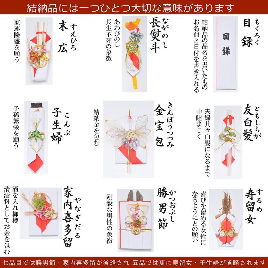 長熨斗、目録、結納金包、勝男節、寿留女、子生婦、