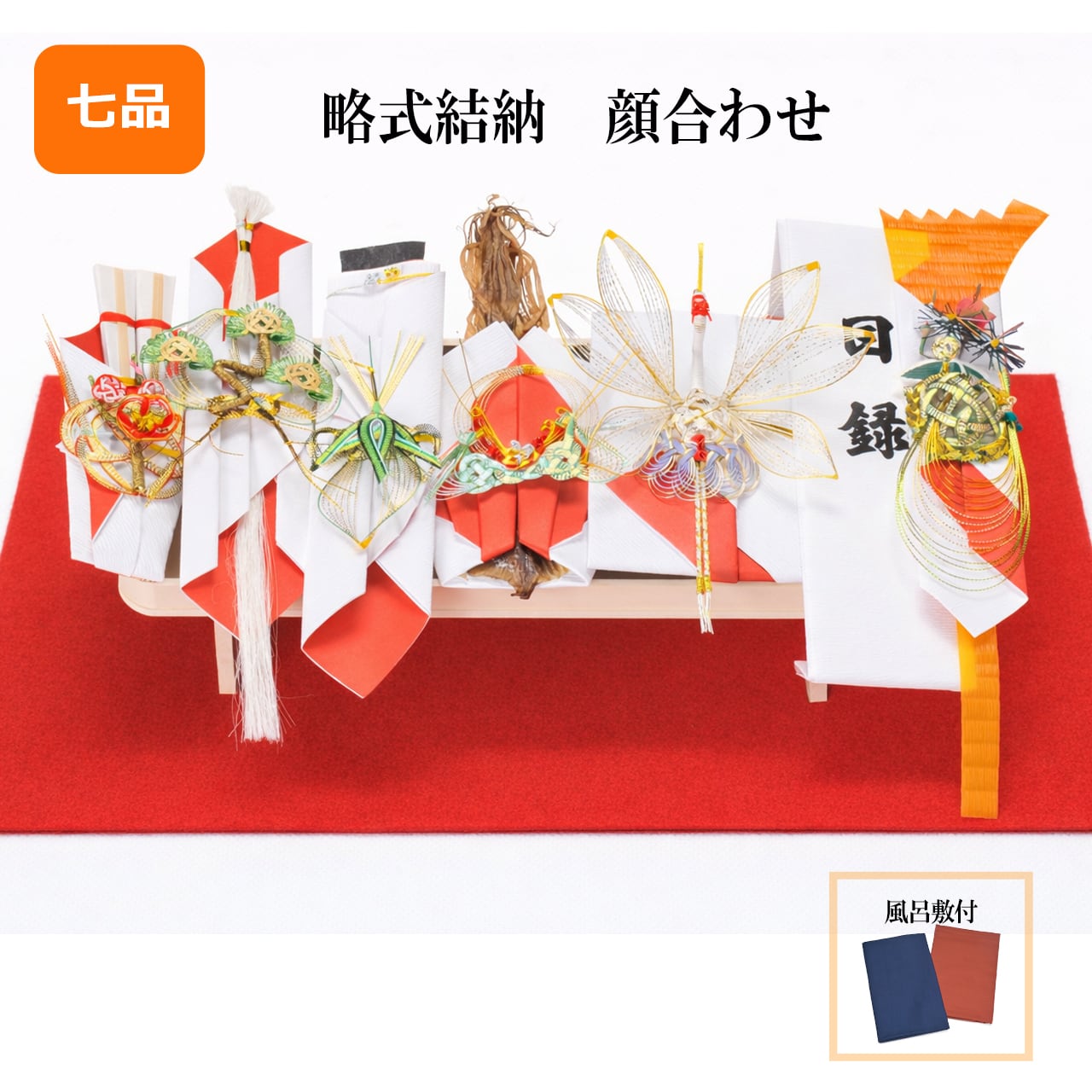 結納式に安心してお使いいただける、結納七品目、風呂敷のセットです。