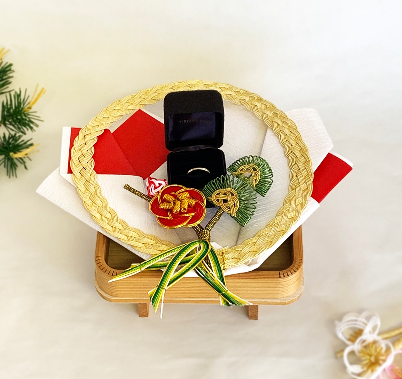 ご両家顔合せや略式結納に婚約記念品や指輪をお披露目します。